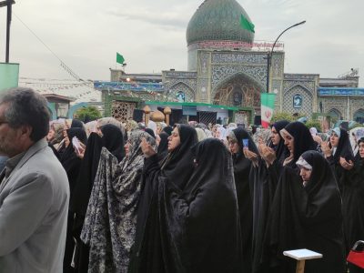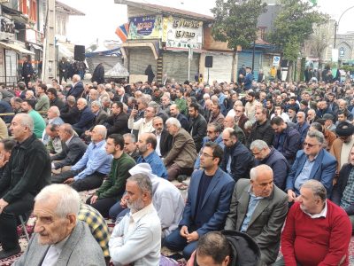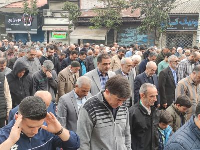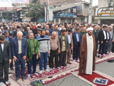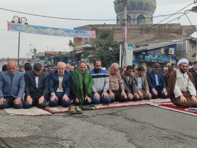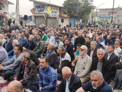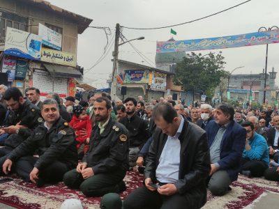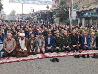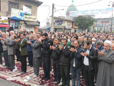 نماز عید سعید فطر شهر آستانه اشرفیه صبح امروز با حضور گسترده اقشار مختلف مردم در جلوی صحن حرم مطهر و در خیابان اصلی این شهر به امامت حجت الاسلام طیبی امام جمعه این شهر برگزارشد.
