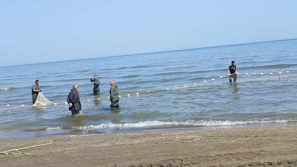 روش صید پره، شیوهای است که در آن تور آماده به کمک یک کرجی بصوت نیمدایره در فاصله مشخصی از ساحل تا عمق ۱۴ متری دریا پهن میشود.