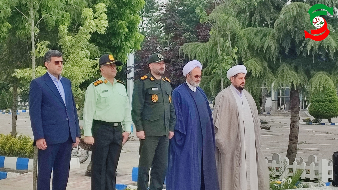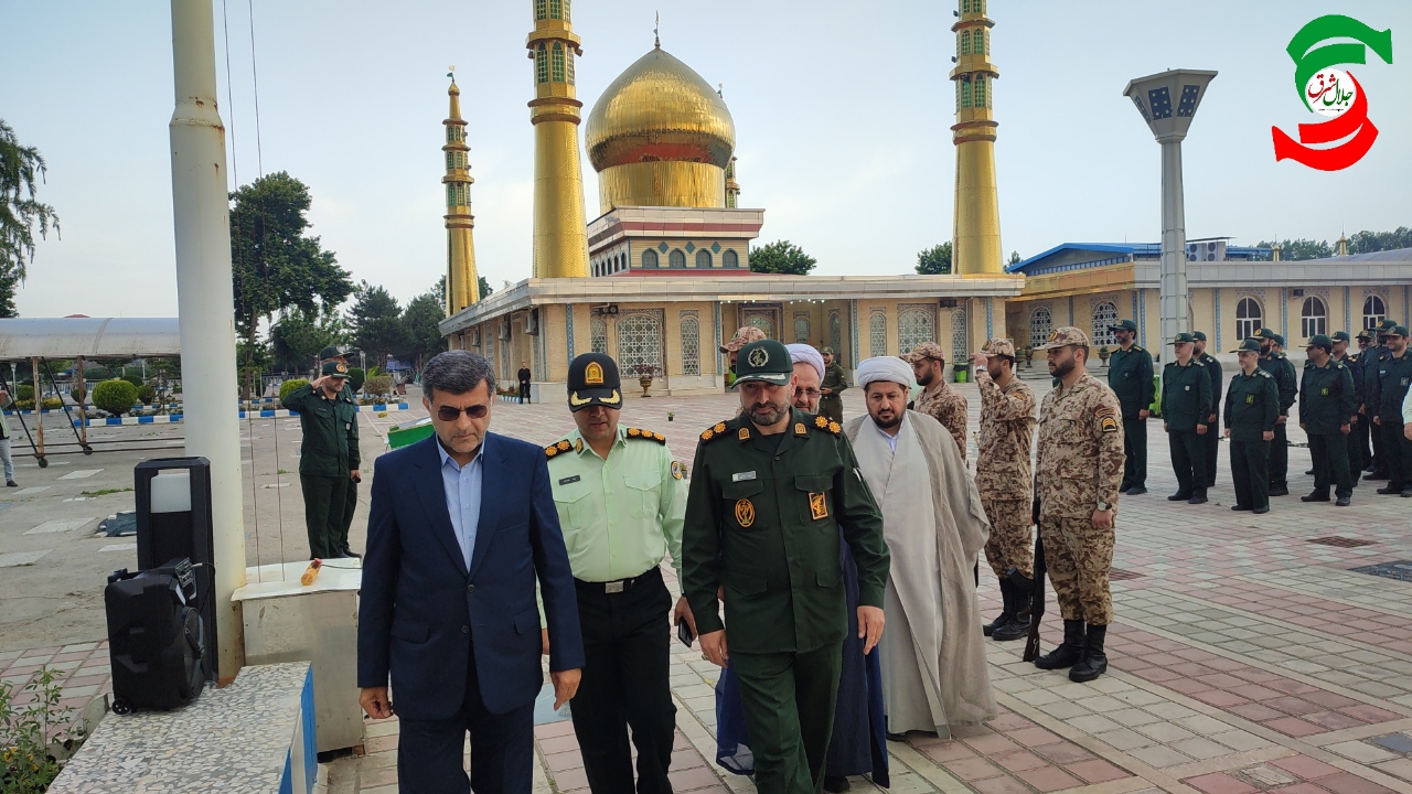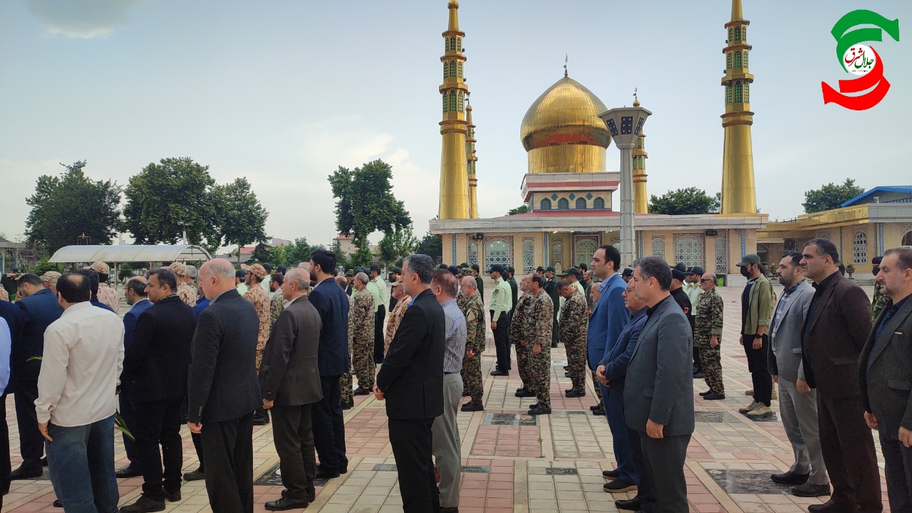 به گزارش جلال شرق، در این آئین نظامی پس از ادای احترام به پرچم و بر افراشتن آن ، حاضران با حضور در جوار شهدای ۸ سال دفاع مقدس و پس از قرائت زیارت عاشورا ، به سخنان حجت الاسلام رضوانی که درباره سه واژه : مقاومت، ایثار و پیروزی سخن می گفت گوش فرا دادند.