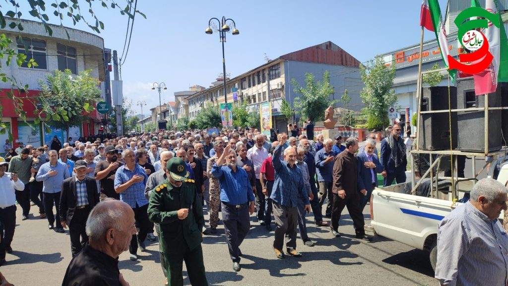 به گزارش پایگاه خبری جلال شرق، مراسم تشییع پیکر پاک «شهید سید حمیدرضا صدیقی صابر» از شهدای جنایت تروریستی رژیم صهیونسیتی ساعت ۱۰صبح از کانون جوانان بسیج جوانان آغاز و پس از حضور تشییع کنندگان در صحن حرم مطهر سلطان سید جلال الدین اشرف و قرائت نماز میت توسط امام جمعه این شهرستان و آت شزدن پرچم اسرائیل تا گلزار شهدای این شهرستان برای تدفین ادامه یافت و پس از تدفین پیک پاک شهید، نماز جمعه در گلزار شهدا برگزارشد