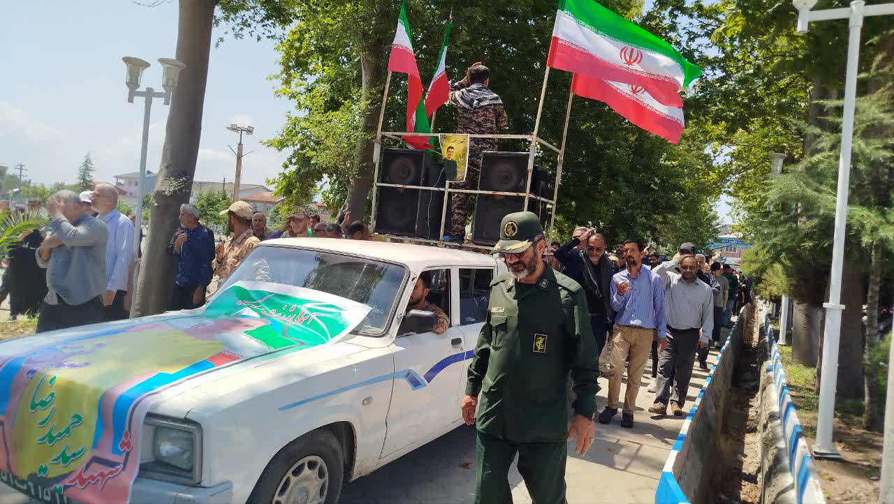 به گزارش پایگاه خبری جلال شرق، مراسم تشییع پیکر پاک «شهید سید حمیدرضا صدیقی صابر» از شهدای جنایت تروریستی رژیم صهیونسیتی ساعت ۱۰صبح از کانون جوانان بسیج جوانان آغاز و پس از حضور تشییع کنندگان در صحن حرم مطهر سلطان سید جلال الدین اشرف و قرائت نماز میت توسط امام جمعه این شهرستان و آت شزدن پرچم اسرائیل تا گلزار شهدای این شهرستان برای تدفین ادامه یافت و پس از تدفین پیک پاک شهید، نماز جمعه در گلزار شهدا برگزارشد