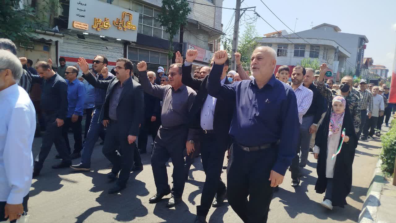 راه پیمایان درطول مسیر با شعار مرگ بر امریکا و مرگ بر اسرائیل بار دیگر خواهان مجازات سخت اسرائیل غاصب تا پایان شرارت های وی در ایران اسلامی شدند.